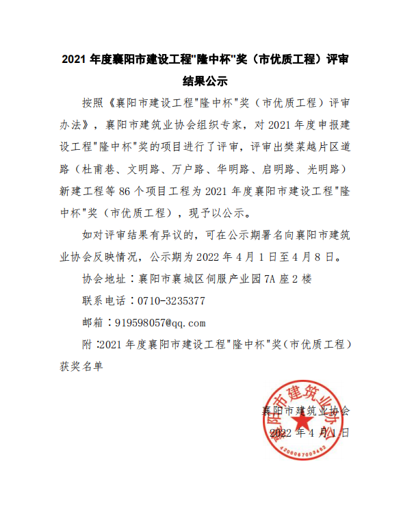 2021年度襄陽(yáng)市建設(shè)工程“隆中杯”獎(jiǎng)(市優(yōu)質(zhì)工程)評(píng)審結(jié)果公示.pdf
