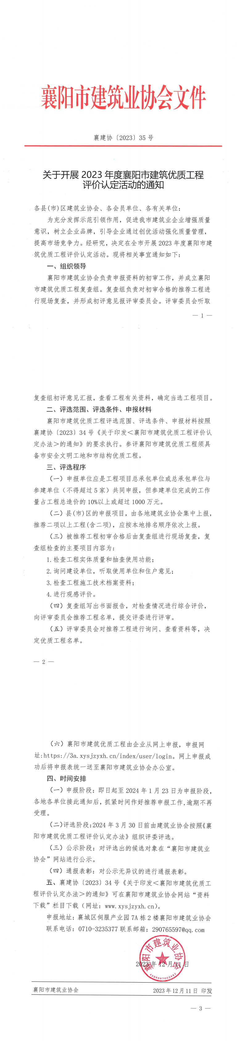 五、襄建協〔2023〕34號《關于印發<襄陽市建筑優質工程評價認定辦法>的通知》可在襄陽市建筑業協會網站“資料下載”欄目下載(網址:m.dswbg.com)。