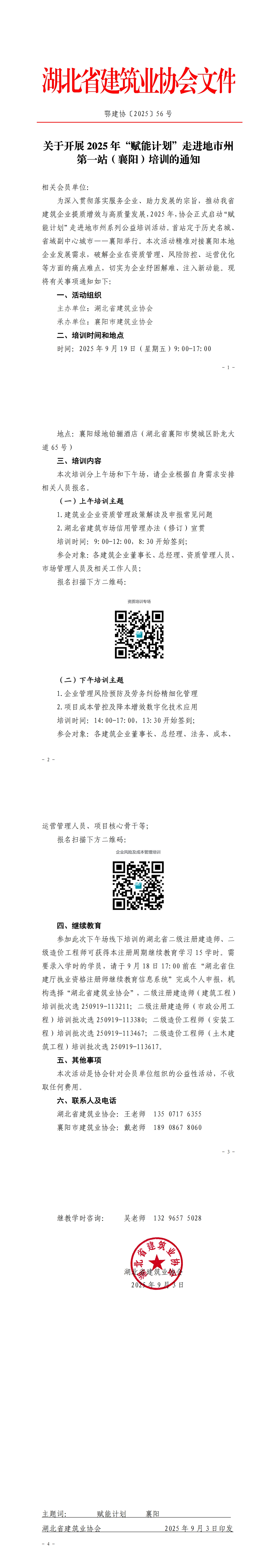 關于轉發鄂建協〔2025〕56號文《關于開展2025年“賦能計劃”走進地市州第一站(襄陽)培訓的通知》的通知