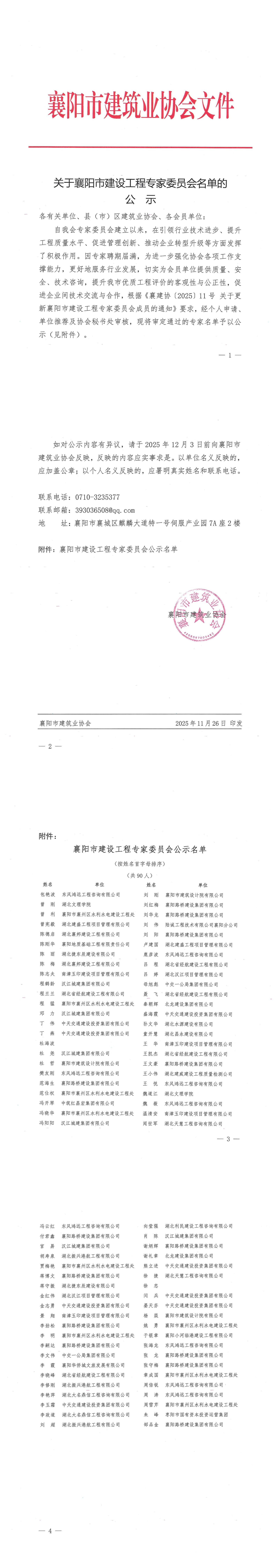 關(guān)于襄陽市建設(shè)工程專家委員會(huì)名單的公示