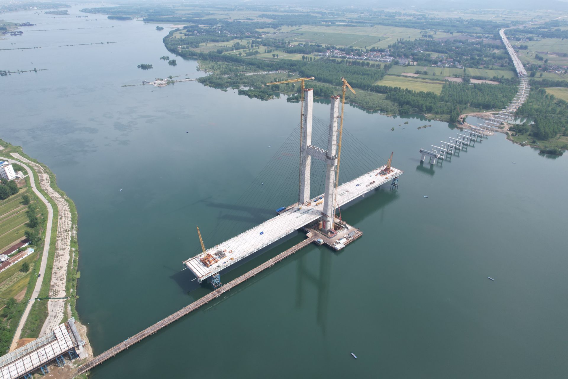 牛首漢江特大橋是襄陽(yáng)207國(guó)道改建工程全線重難點(diǎn)控制性工程,大橋全長(zhǎng)4454米,主橋長(zhǎng)660米,“H”型主塔高201米,是漢江最高的橋塔,建成后將是國(guó)內(nèi)最大跨徑組合梁獨(dú)塔斜拉橋。