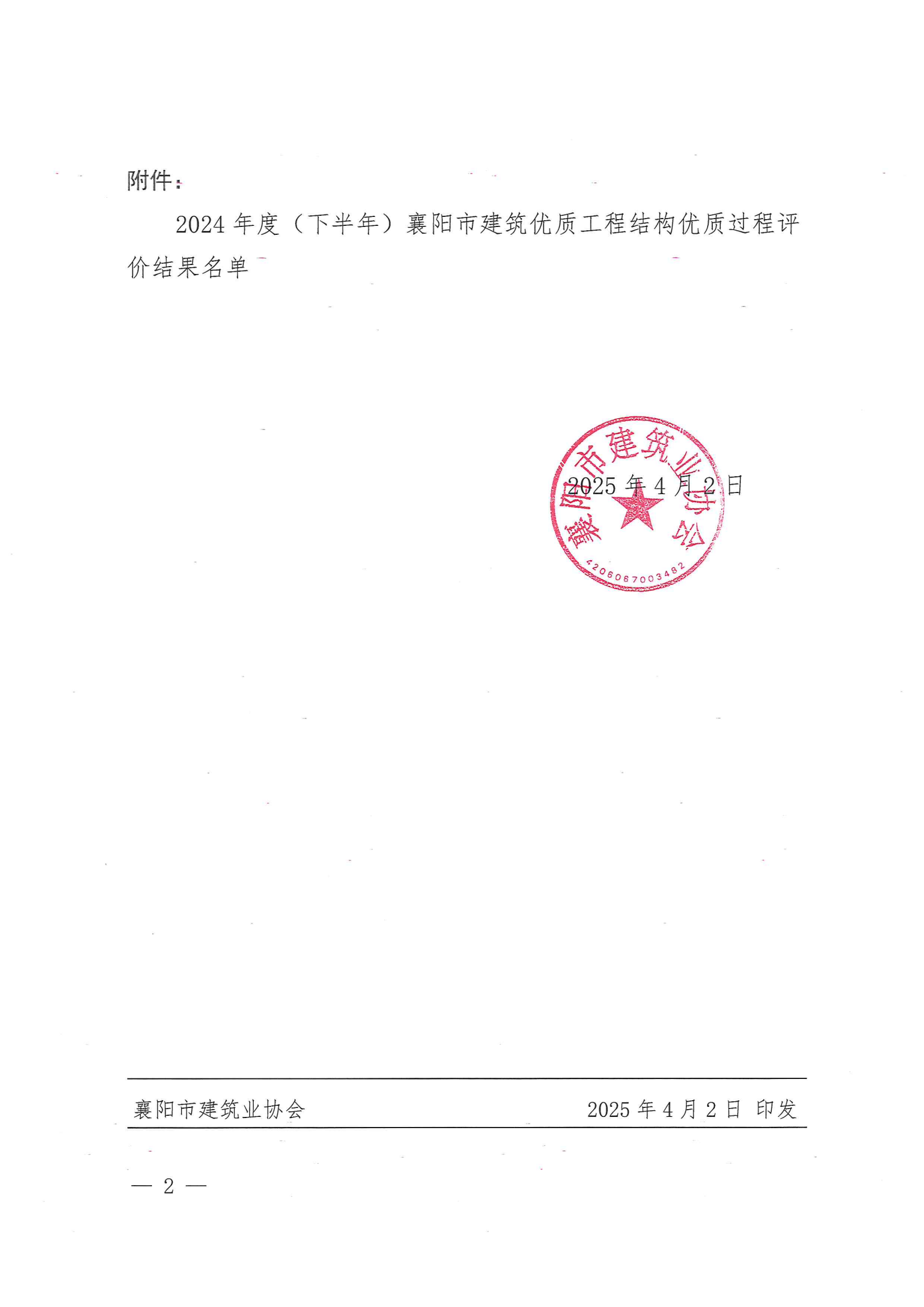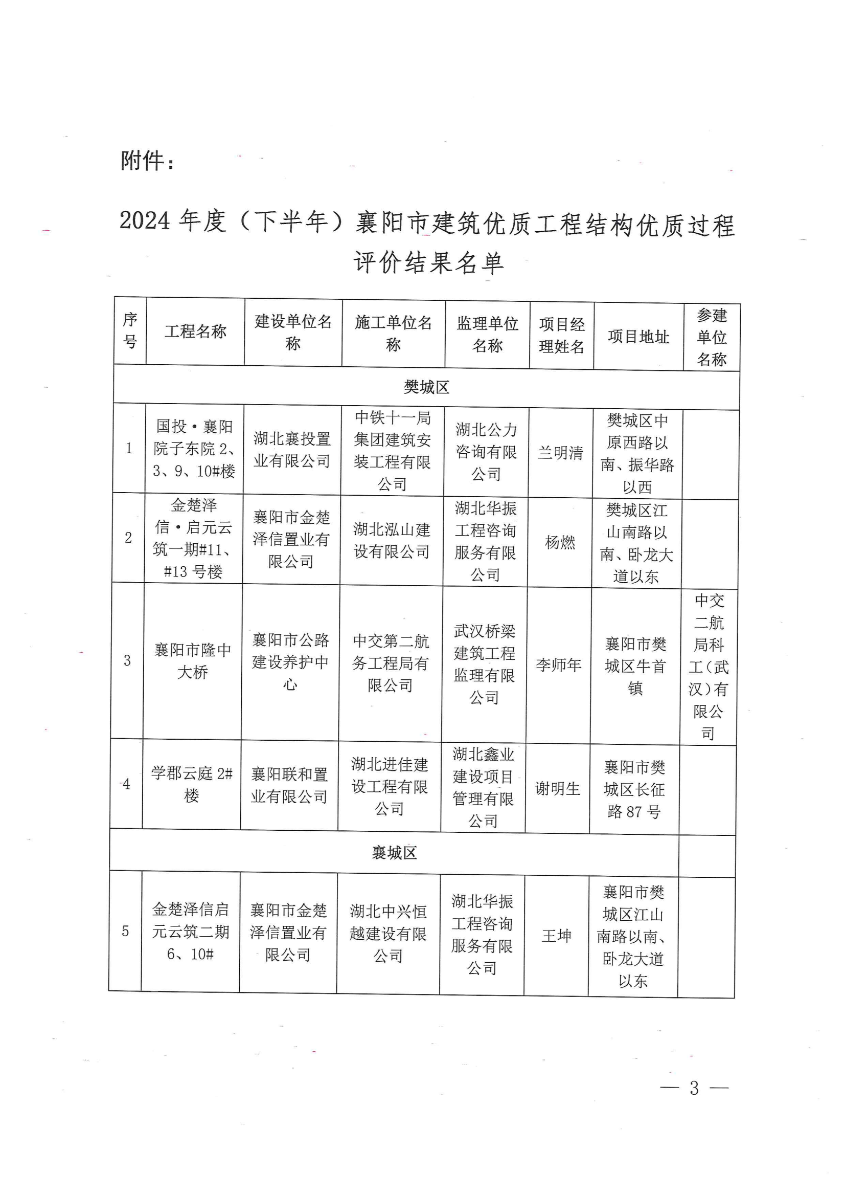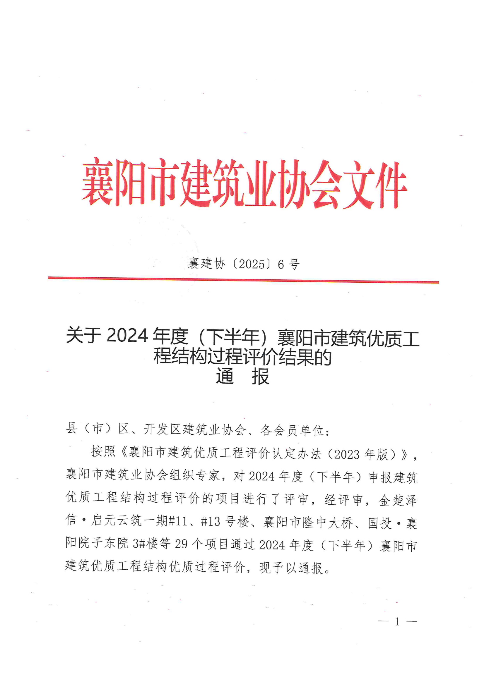 關于2024年度(下半年)襄陽市建筑優(yōu)質工程結構過程評價結果的通報